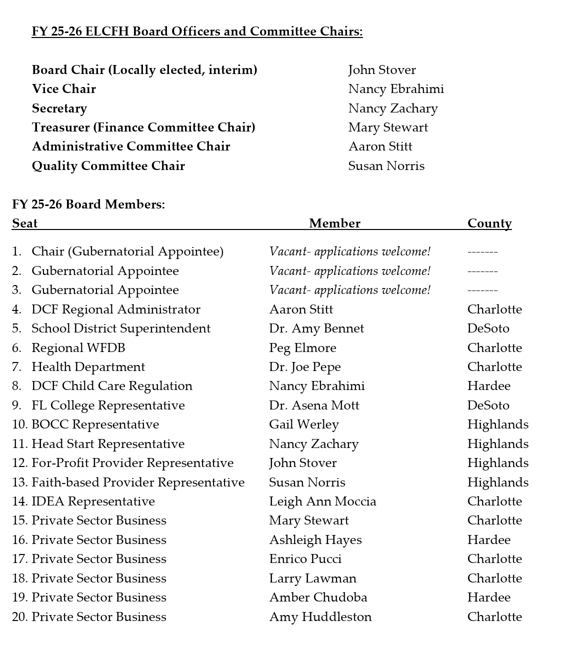 El ELCFH atiende a familias en los condados de Charlotte, DeSoto, Hardee y Highlands